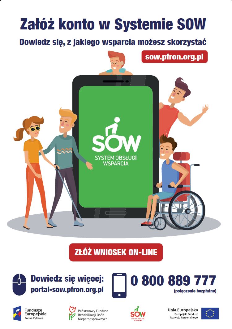 Powiatowe Centrum Pomocy Rodzinie w Oleśnicy rekomenduje składanie wszystkich wniosków o dofinansowania za pośrednictwem platformy SOW (System Obsługi Wsparcia) od 01.01.2023 roku.